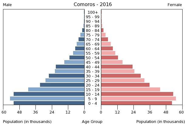 Comoros’ population is a melange of Arabs, Persians, Indonesians, Africans, and Indians, and the much smaller number of Europeans that settled on the islands between the 8th and 19th centuries, when they served as a regional trade hub. The Arab and Persian influence is most evident in the islands’ overwhelmingly Muslim majority – about 98% of Comorans are Sunni Muslims. The country is densely populated, averaging nearly 350 people per square mile, although this varies widely among the islands, with Anjouan being the most densely populated.