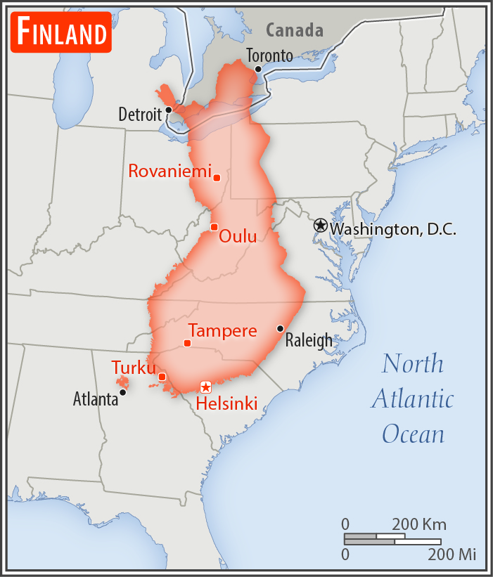 Northern Europe, bordering the Baltic Sea, Gulf of Bothnia, and Gulf of Finland, between Sweden and Russia