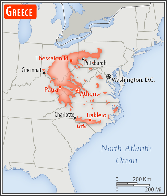 strategic location dominating the Aegean Sea and southern approach to Turkish Straits; a peninsular country, possessing an archipelago of about 2,000 islands