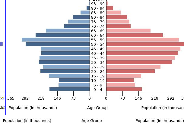 65 years and over: 16.53% (male 559,512/female 629,009) (2017 est.)
