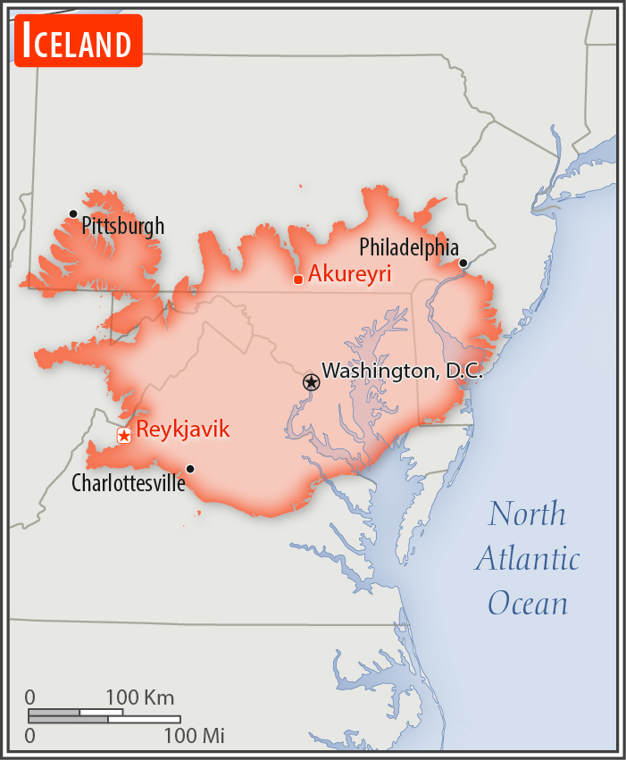 Northern Europe, island between the Greenland Sea and the North Atlantic Ocean, northwest of the United Kingdom