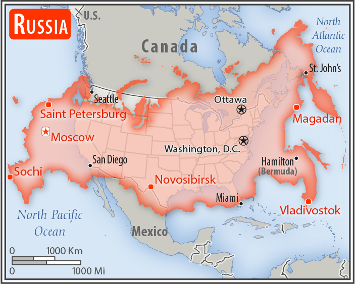 North Asia bordering the Arctic Ocean, extending from Europe (the portion west of the Urals) to the North Pacific Ocean