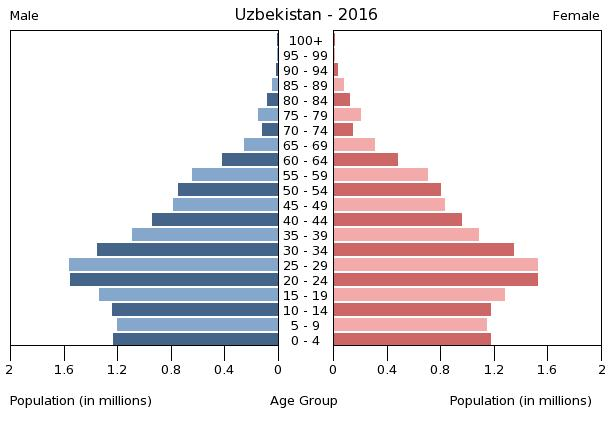 Uzbek 80%, Russian 5.5%, Tajik 5%, Kazakh 3%, Karakalpak 2.5%, Tatar 1.5%, other 2.5% (1996 est.)