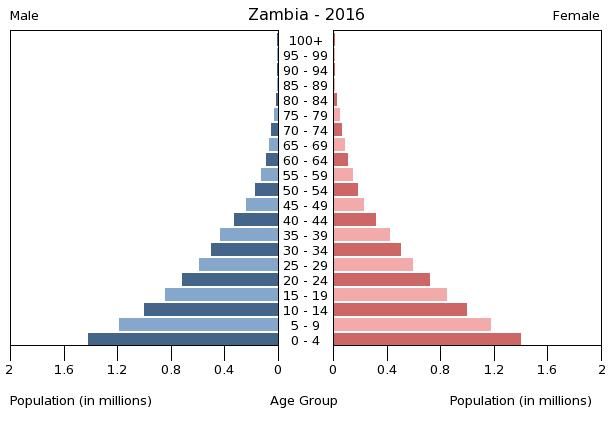 Zambia’s poor, youthful population consists primarily of Bantu-speaking people representing nearly 70 different ethnicities. Zambia’s high fertility rate continues to drive rapid population growth, averaging almost 3 percent annually between 2000 and 2010. The country’s total fertility rate has fallen by less than 1.5 children per woman during the last 30 years and still averages among the world’s highest, almost 6 children per woman, largely because of the country’s lack of access to family planning services, education for girls, and employment for women. Zambia also exhibits wide fertility disparities based on rural or urban location, education, and income. Poor, uneducated women from rural areas are more likely to marry young, to give birth early, and to have more children, viewing children as a sign of prestige and recognizing that not all of their children will live to adulthood. HIV/AIDS is prevalent in Zambia and contributes to its low life expectancy.